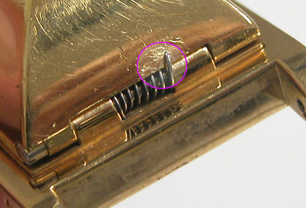 おまけにバネの端はフタの外に掛けてあり。これではキズが付く。