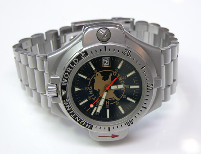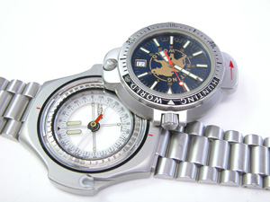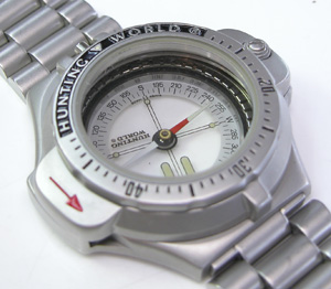 お馴染み時計部分のみが回転してコンパスが現れる構造の腕時計。