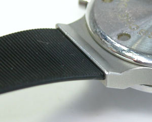 ベルトを外したいですが・・・ラグ部にはバネ棒・割ピン・Cリング何も無く、つまりケースに固定。つまりは絶対外れませんし、交換必要は無しという自信か?