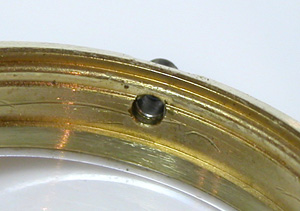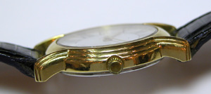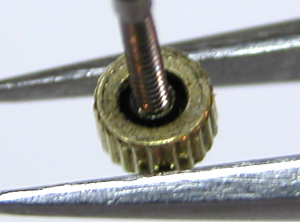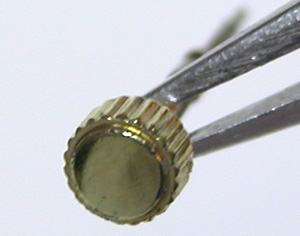典型的なスイスムーブメント。竜頭の裏側チェック。