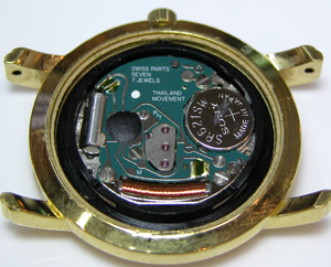 ムーブメントを戻して電池格納部をチェックして、あとは新しい電池を入れて電池交換メンテナンス完了です。