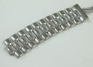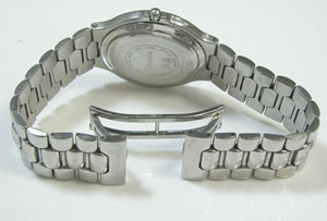 ステンレス無垢バンドに両開きバックル。