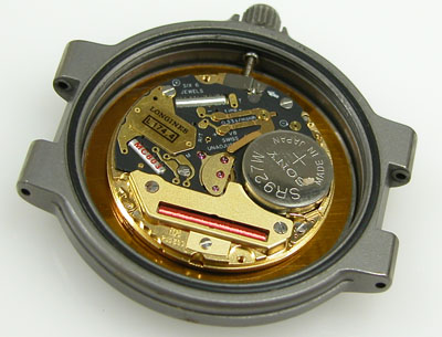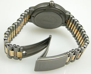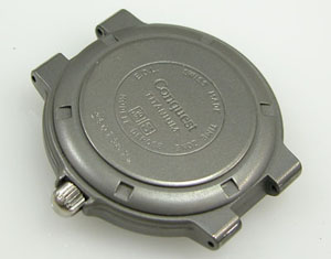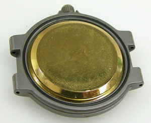 重厚な耐磁プレートが二重に。これはチタンで余りにも軽いので装着が悪くなる為に