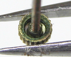 綺麗になったケースにムーブメントをもどして電池格納部をチェックします。