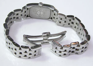 ステンレス無垢バンドに両開きバックル。