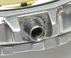 ムーブメント拡大。むむ・・・このスペーサーは如何にも手作り。これはムーブメント交換を行っていますね。浸水で錆びきったものは交換した方が安い場合もありますから。
