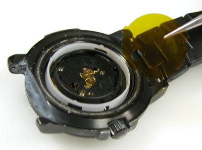 外したパーツを戻していき電池を入れて動作確認。パッキンは交換してシリコン塗布をしてケースに戻します。