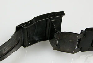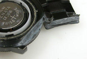 裏蓋を開けると電池がムーブメントを覆っています。ラグ部の汚れもチェックします白い粉が付着しておりますが、これは洗浄で綺麗になるでしょう。