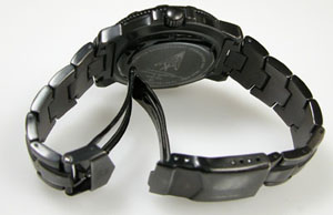 ステンレス無垢バンドに三つ折れダブルロック。