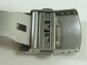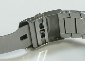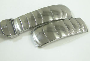 ステンレス無垢バンドに三つ折れダブルロック。バングルみたいな構造のバンドです。