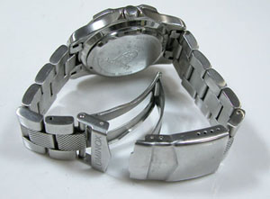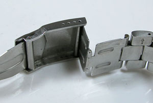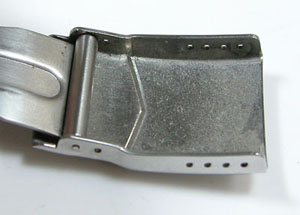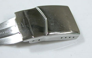 ステンレス無垢バンドに三つ折れダブルロック。微調整部分の位置をチェックしておきます。
