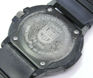 裏蓋の裏側もチェックします。パッキンが効いているのが良く分かります。