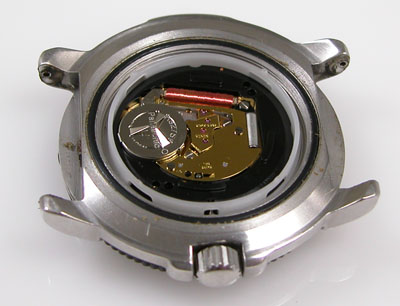 綺麗になったケースにムーブメントを戻して電池格納部をチェックします。