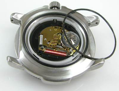 綺麗になったケースにムーブメントを戻して電池格納部をチェックします。