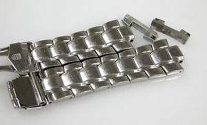 ステンレス無垢バンドに三つ折れダブルロック。
