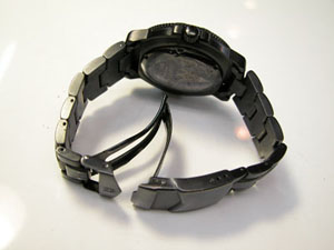 ステンレス無垢バンドに三つ折れダブルロック。