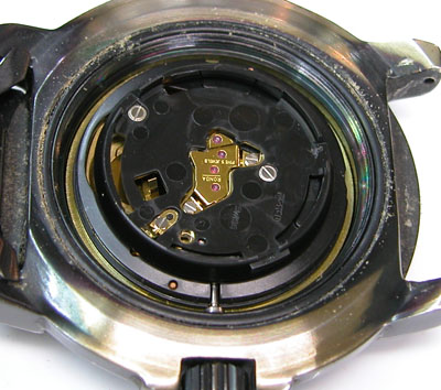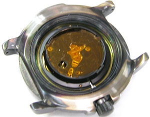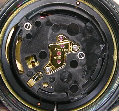 ムーブメント拡大。黒いプラスチックで覆われておりますが「RONDA 」の920SWが入るムーブをリチュウム電池仕様にするための工夫ですか。