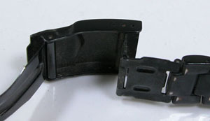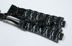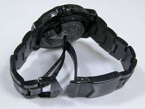 ステンレス無垢バンドに三つ折れダブルロック。