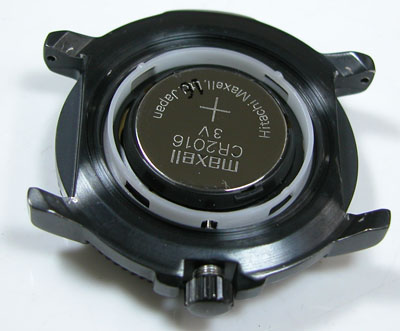 裏蓋を開けると電池がムーブメントを覆っています。