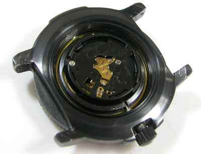 裏蓋を開けると電池がムーブメントを覆っています。