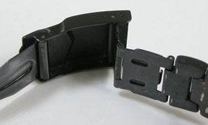 ステンレス無垢バンドに三つ折れダブルロック。