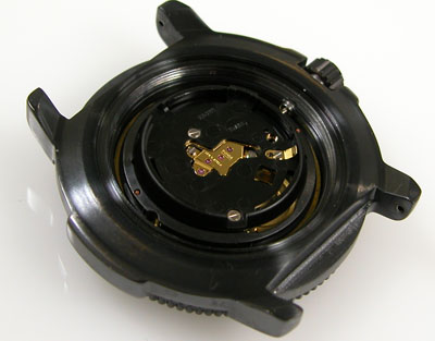 裏蓋を開けると電池がムーブメントを覆っています。