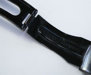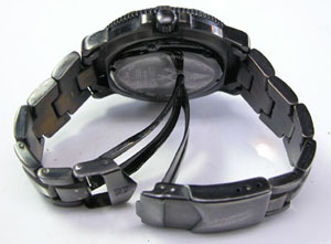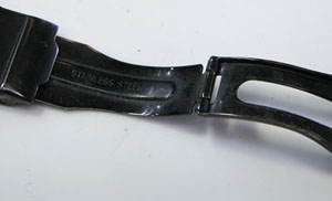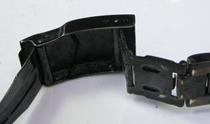 バックルの汚れ、裏蓋の裏側もチェックします。