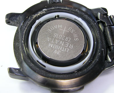 裏蓋を開けると電池がムーブメントを覆っています。