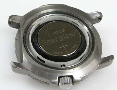 裏蓋を開けると電池がムーブメントを覆っています。
