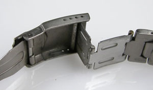 チタン無垢バンドに三つ折れダブルロック。微調整位置をチェックして。