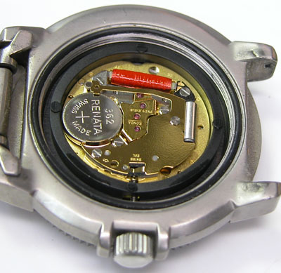 綺麗になったケースにムーブメントを戻して電池格納部をチェックします。電池を入れて動作確認。