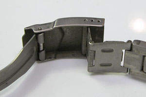 ステンレス無垢バンドに三つ折れダブルロック。