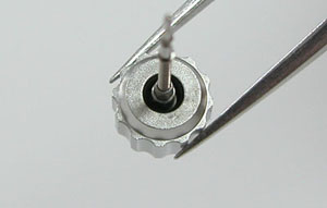 外したパーツを戻していき電池を入れて動作確認。パッキンにシリコン塗布をしてケースに戻します。