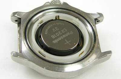 綺麗になったケースにムーブメントを戻して電池格納部をチェックします。