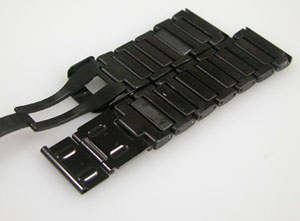 ステンレス無垢バンドに三つ折れダブルロック。