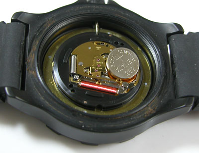 綺麗になったケースにムーブメントを戻して電池格納部をチェックします。