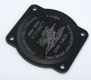 裏蓋は4本ネジで留まっていて右が裏蓋記載。