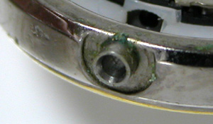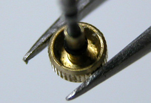 先ずは、竜頭を抜いて。竜頭の裏側をチェックします。以外に綺麗ですが。