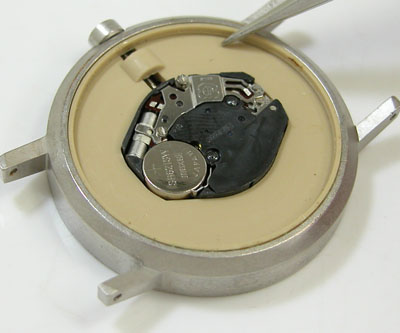 綺麗になったケースにムーブメントを戻して電池格納部をチェックします。