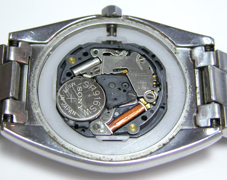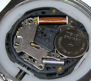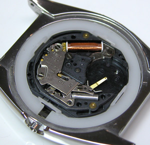 ムーブメントを戻して電池交換。新しい電池を入れて。