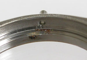 3時位置のサビの塊を除去のご依頼です。こういう状況は裏側を見るのが怖いのですが。