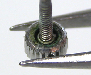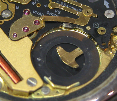 綺麗になったケースにムーブメントをもどして電池格納部をチェックします。