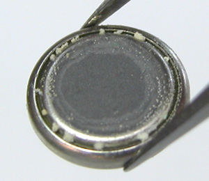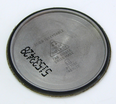 裏蓋の汚れもチェックします。電池は液漏れの跡が見えますが。