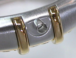 ステンレス無垢バンドに三つ折れプッシュバックル。