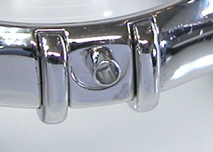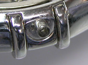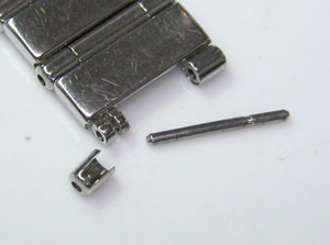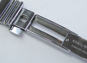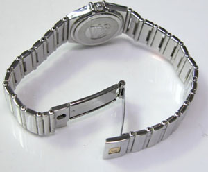 ステンレス無垢バンドに三つ折れプッシュバックル。