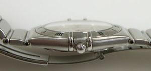 ステンレス無垢バンドに三つ折れプッシュバックル。