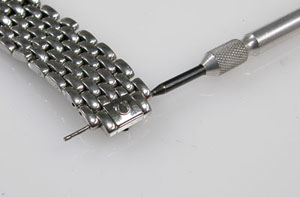 ブレスのコマもチェックしますが抜ける箇所は無く。簡単に抜けるのはバックルピンのみ。バックルの汚れもチェックして。