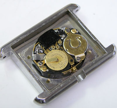 裏蓋を開けると文字盤ごと出てきます。