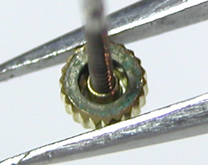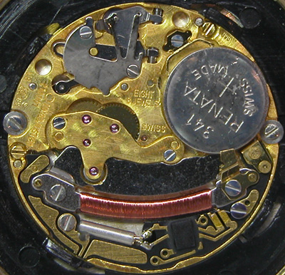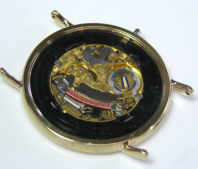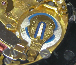ムーブメントをもどして電池格納部をチェックします。