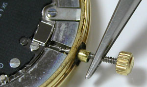 先ずは竜頭を抜きます。竜頭裏側確認。